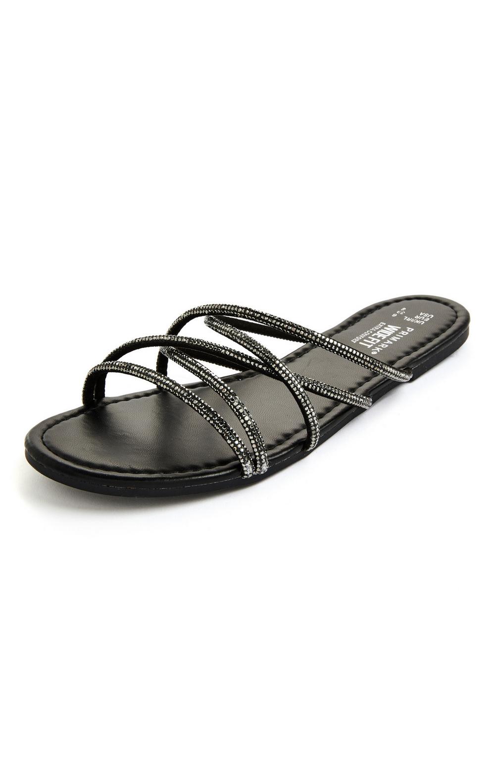 6SANDALIAS PLANAS NEGRAS DE TIRAS CON STRASS