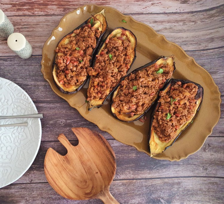 Deja que la pulpa se enfríe un poco para no quemarte, luego retírala con ayuda de una cuchara, procurando no romper la piel de las berenjenas, puesto que la utilizaremos después para poner el relleno.