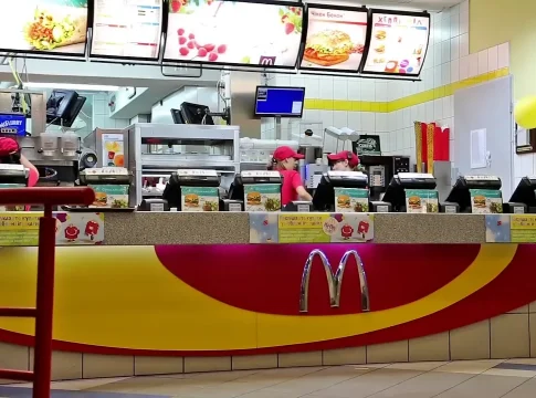 Entrar en este establecimiento es una experiencia que todo el mundo debería vivir al menos una vez en la vida. La decoración te traslada hasta la década de los años 30, con candelabros art decó y vidrieras pero, al mismo tiempo, alberga los elementos de cualquier otro McDonald ‘s: paneles luminosos con los productos de la carta, máquinas de autoservicio, etc.