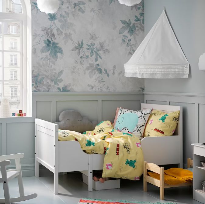 Si quieres que tus hijos contribuyan a mantener un planeta más sostenible la cama infantil SUNDVIK es ideal para ellos. Esta cama te da la posibilidad de no tener que cambiar la cama a medida que los niños crezcan ya que al ser extensible puedes ir adaptándola a su medida, evitando así que se corten más árboles y se utilicen pinturas o barnices que están compuestas de químicos. Esta cama cuesta 199€ y su longitud mínima es de 137 centímetros mientras que la máxima es de 207 con un ancho de 91 cm.