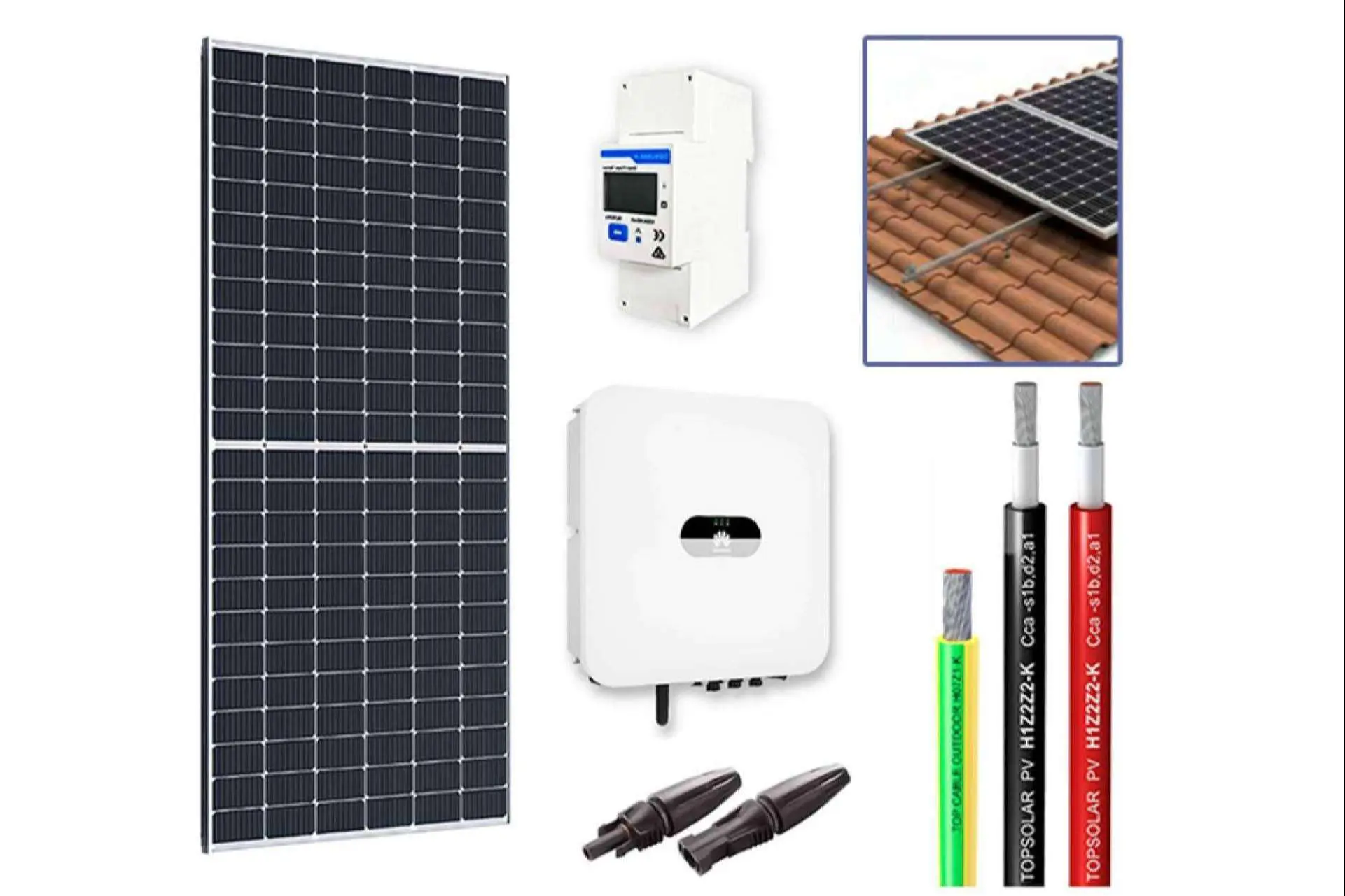 En líneas generales, un kit solar sin almacenamiento está compuesto por 4 componentes fundamentales. Los primeros son las placas o paneles solares que sirven para transformar la radiación emitida por el Sol en energía eléctrica. Estos paneles se fijan en el tejado o en la cubierta con una estructura de fijación o soporte. Cuando el tejado tiene una inclinación óptima, se pueden usar los soportes coplanares que respetan la estética de la casa y además permiten una buena inclinación para captar la luz solar. Si no es el caso, existen soportes de hormigón que proporcionan la inclinación necesaria para cubiertas planas. Posteriormente, el inversor solar es un componente sumamente importante que muchas veces se pasa por alto. Es el responsable de transformar la energía continua que generan los paneles solares en energía alterna para el hogar o local comercial. También es el controlador de todo el sistema, ya que junto con el medidor de energía, es el que proporciona los datos de la generación de la planta, el consumo total del hogar de la planta y de la red eléctrica. Estos datos se pueden monitorizar a tiempo real desde la aplicación móvil que ofrece el fabricante. Antes de comprar el inversor, hay que saber qué tensión necesita el suministro, tensión monofásica o trifásica.