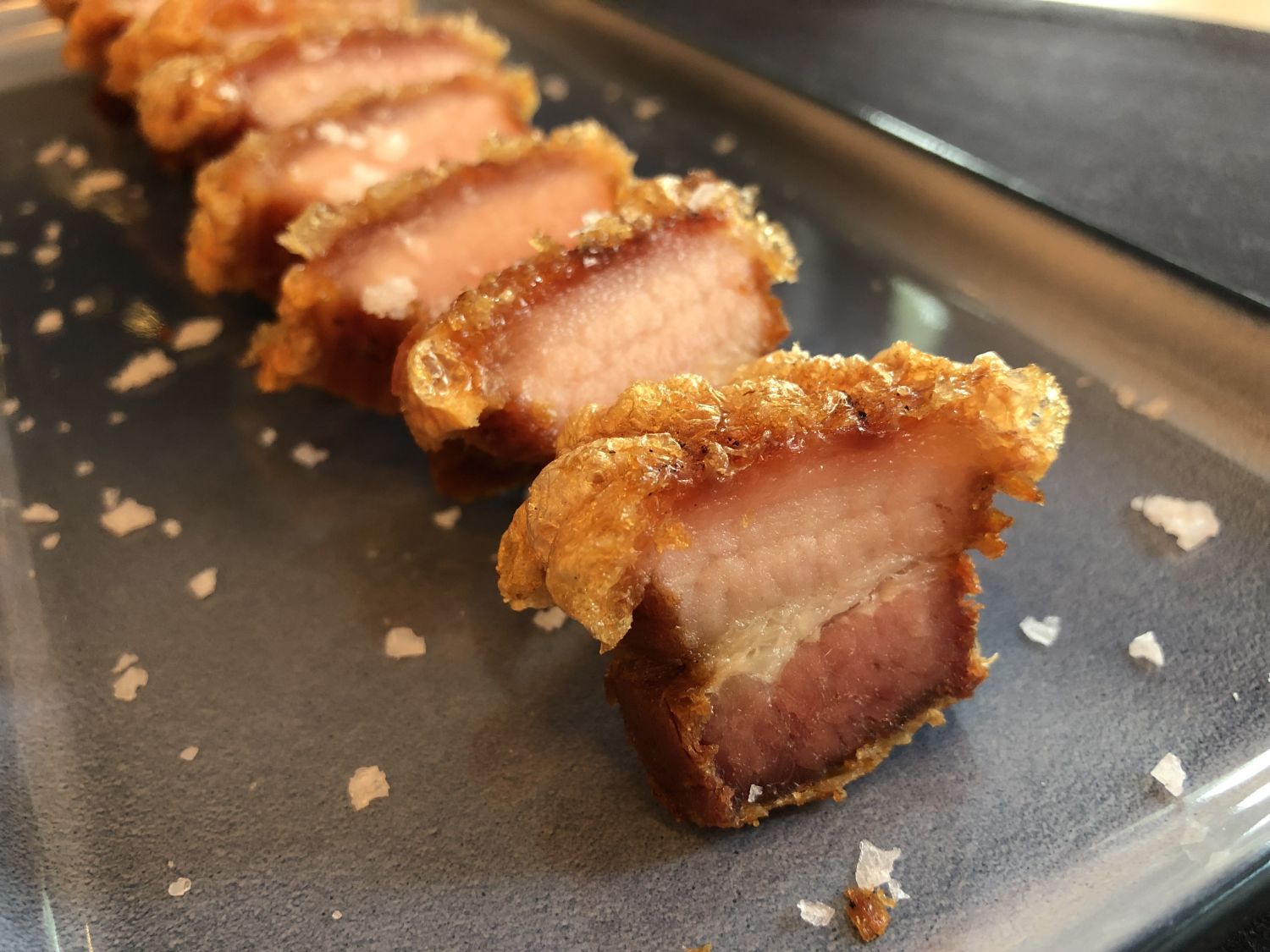 Ahora que los torreznos se han enfriado, córtalos en taquitos y estarán listos para servir. Hay alguna receta con patatas que sugiere freír otra vez los torreznos para hacerlos más crujientes, pero en este caso no es necesario. Sabrás que están en su punto si cuando los freíste a fuego fuerte se formaron las características burbujas en la corteza; pero si quieres asegurarte de que están en su punto, prueba uno de los torreznos en cuanto estén listos.
