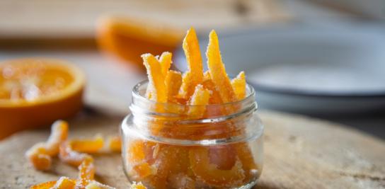 Las tiras de naranja confitada son una delicia muy fácil de preparar. Esta receta te muestra una forma más golosa de disfrutar de las naranjas. Para obtener un resultado aún mejor, puedes reemplazar parte del agua del almíbar por el zumo de las frutas.