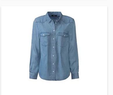 4Blusa denim con bolsillos y bajo redondeado para mujer