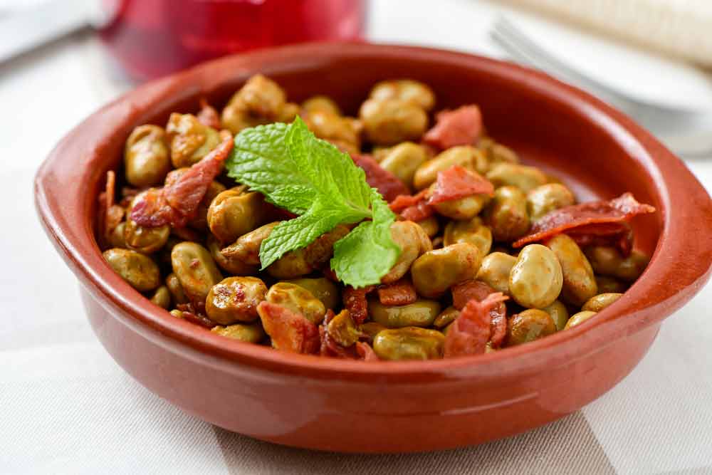 La receta de habas con jamón es típica de la gastronomía de Granada, que aprovecha un producto de la huerta para hacer uno de sus mejores platos. En la región existen un montón de platos con habas, por ejemplo, las habas crudas con “salaillas” que se preparan con bacalao salado durante el día de la Cruz, una de las fiestas más importantes de la capital. Otro clásico son las habas tiernas fritas con jamón serrano, uno de los platos más recomendamos si se visita Granada.