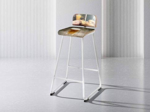 Por otro lado, las sillas y los taburetes son los muebles de mayor impacto visual, especialmente en los negocios de hostelería. Asimismo, asientos y respaldos con elementos gráficos como café o cerveza están empezando a formar parte de la nueva decoración de cafeterías y restaurantes.