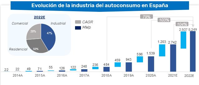 En segundo lugar, a que el cliente final entiende que el autoconsumo es la forma más eficiente de ahorrar (hasta un 70%): generando su propia energía de un forma limpia y sencilla y que le garantiza una independencia de las eléctricas y del modelo energético actual que esta agotado. En otras palabras: si con tus paneles generas tu propia electricidad con una fuente inagotable como la del Sol, serás inmune a cualquier crisis energética global como la provocada por el conflicto de Ucrania o cualquier otra que esté por venir.