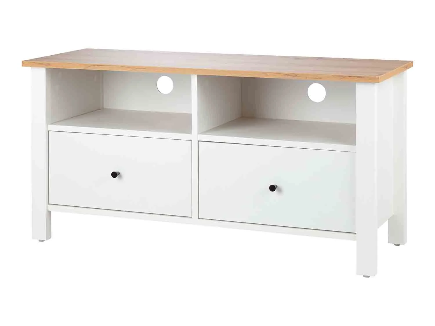 El catálogo de muebles de Lidl es muy interesante, ya que nos ofrece diseños modernos, actuales y de calidad. Ahora está en oferta este mueble bajo pensado para colocar la tele en la sala de estar. Es un modelo con un estilo rústico moderno, hecho con madera auténtica de gran calidad. Está recubierto con resina de melamina, fácil de limpiar y resistente a golpes y arañazos. Tiene 2 compartimentos abiertos en la parte de atrás para pasar los cables y 2 cajones de recorrido suave con tiradores metálicos. Aguanta un peso de 15 kg y tiene unas medidas aproximadas de 113 x 40 x 57 cm (largo x ancho x alto). Puedes llevártelo por 69,99 euros.