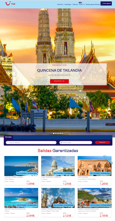 TUI es la división corporativa emisora en España de TUI Group. Son especialistas en Grandes Viajes a América, Europa, Oriente Medio, África, Asia y Pacífico, con más de 25 años de trayectoria. TUI une el conocimiento, la capacidad y la seguridad reconocidas en el mercado con el principal objetivo de ofrecer un servicio personalizado de gran excelencia. Siempre con ganas de innovar y de actualizarse, manteniendo el conocimiento especializado y la calidad como la idiosincrasia de la compañía.