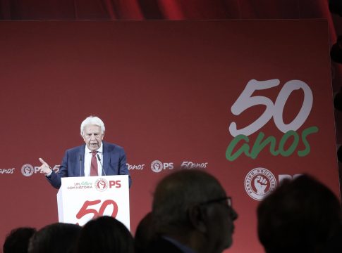 Olof Scholz, canciller alemán, y Felipe González, expresidente del gobierno, acompañaron a Antonio Costa, primer ministro de Portugal y secretario general, el pasado miércoles 19 abril en Lisboa en un gran acto que congregó a más de mil personas para celebrar el 50 aniversario de la fundación del Partido Socialista portugués.