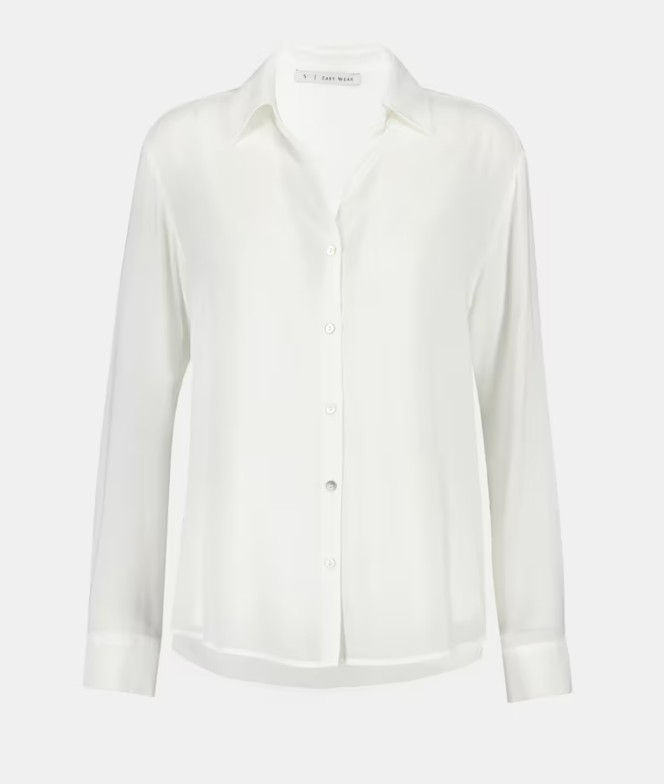 Preciosa camisa de manga larga y cuello camisero ideal para esta temporada que comienza primavera-verano. Está confeccionada en viscosa de color blanco que te va a favorecer aún más con otras piezas de tu fondo de armario