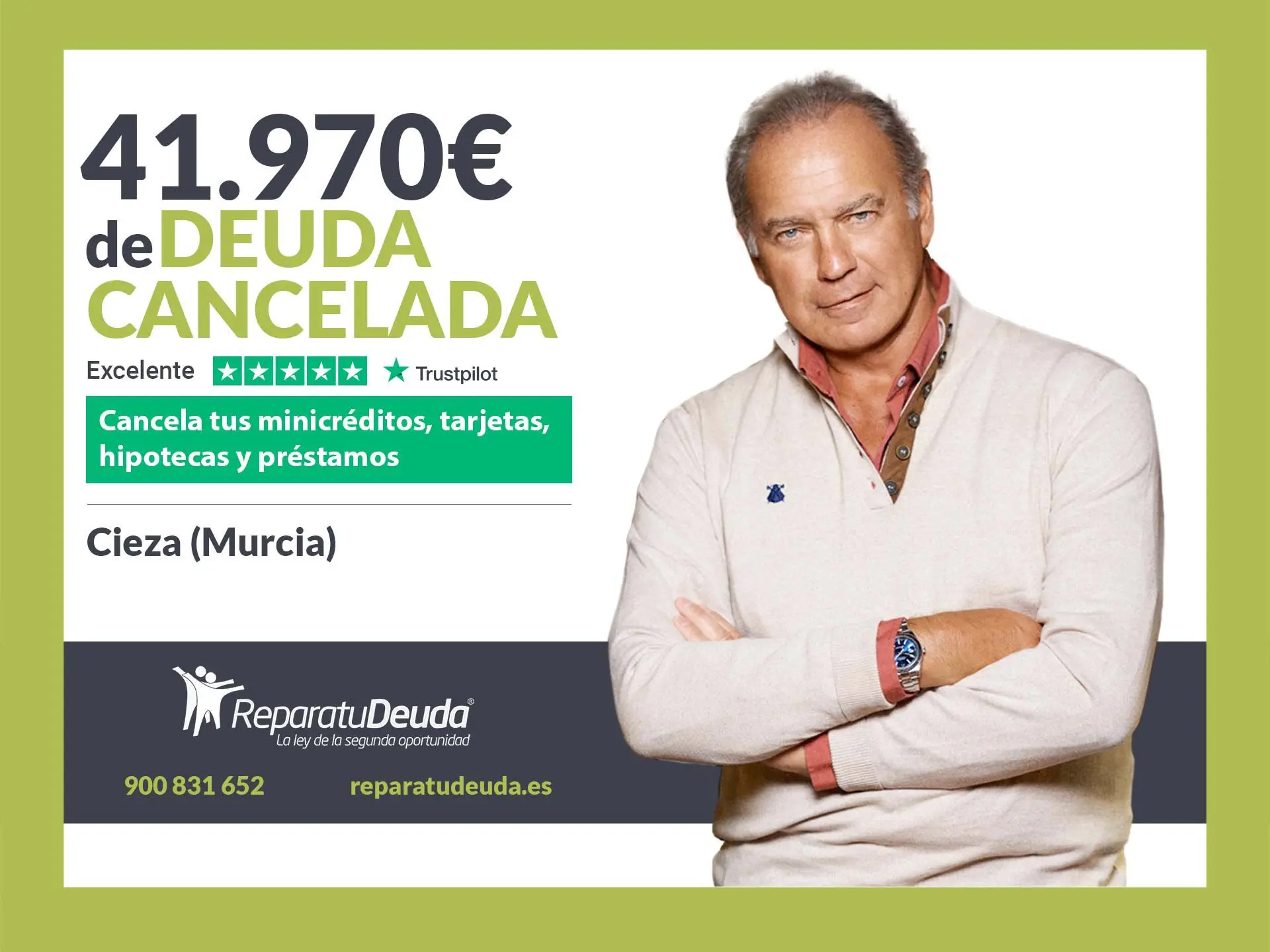 Repara tu Deuda Abogados, despacho de abogados líder en España en la aplicación de la Ley de Segunda Oportunidad, ha logrado una cancelación de deuda en Cieza (Murcia). Mediante la gestión de Repara tu Deuda Abogados, el Juzgado de lo Mercantil nº3 de Murcia ha dictado el beneficio de exoneración del pasivo insatisfecho en el caso de una mujer, vecina de Cieza (Murcia), que había acumulado una deuda de 41.970 euros a la que no podía hacer frente. VER SENTENCIA