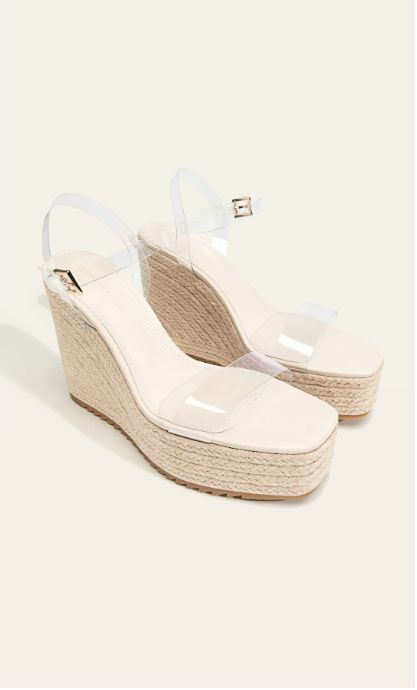 Si quieres dar a tu look para la Feria de Sevilla un toque más moderno puede optar por estas cuñas de esparto con tiras transparentes. Esta opción es una posibilidad cómoda y fresca para que tus pies no se cansen en exceso de pasear por la feria. Estos zapatos te dan la posibilidad de conjuntarlos con cualquier look ya sea con un vestido de flamenca o con otras prendas. Puedes encontrarlas en la web de Stradivarius por 35,99 euros.
