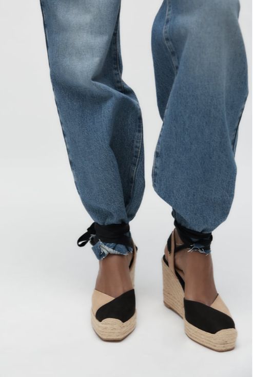 Estas cuñas destalonadas mezcla el negro y el marrón hacen que tu look se vuelva más sofisticado y elegante. Con ellas podrás bailar en las casetas de la feria sin ningún problema ya que tiene tiras para atarlas al tobillo y conseguir la mayor sujeción posible. Puedes encontrarlas por el precio de 39,95 euros tanto en la web de Zara como en tiendas físicas.