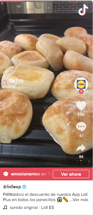 En el vídeo de Lidl vemos una sucesión de imágenes de panes de la marca, que cierran con una promoción especial: quienes compren pan a través de la aplicación del supermercado, obtendrán un 10% de descuento. La gracia está en que el responsable de comunicación canta “pan pan pan” al ritmo de las imágenes, con un filtro de voz tronchante.
