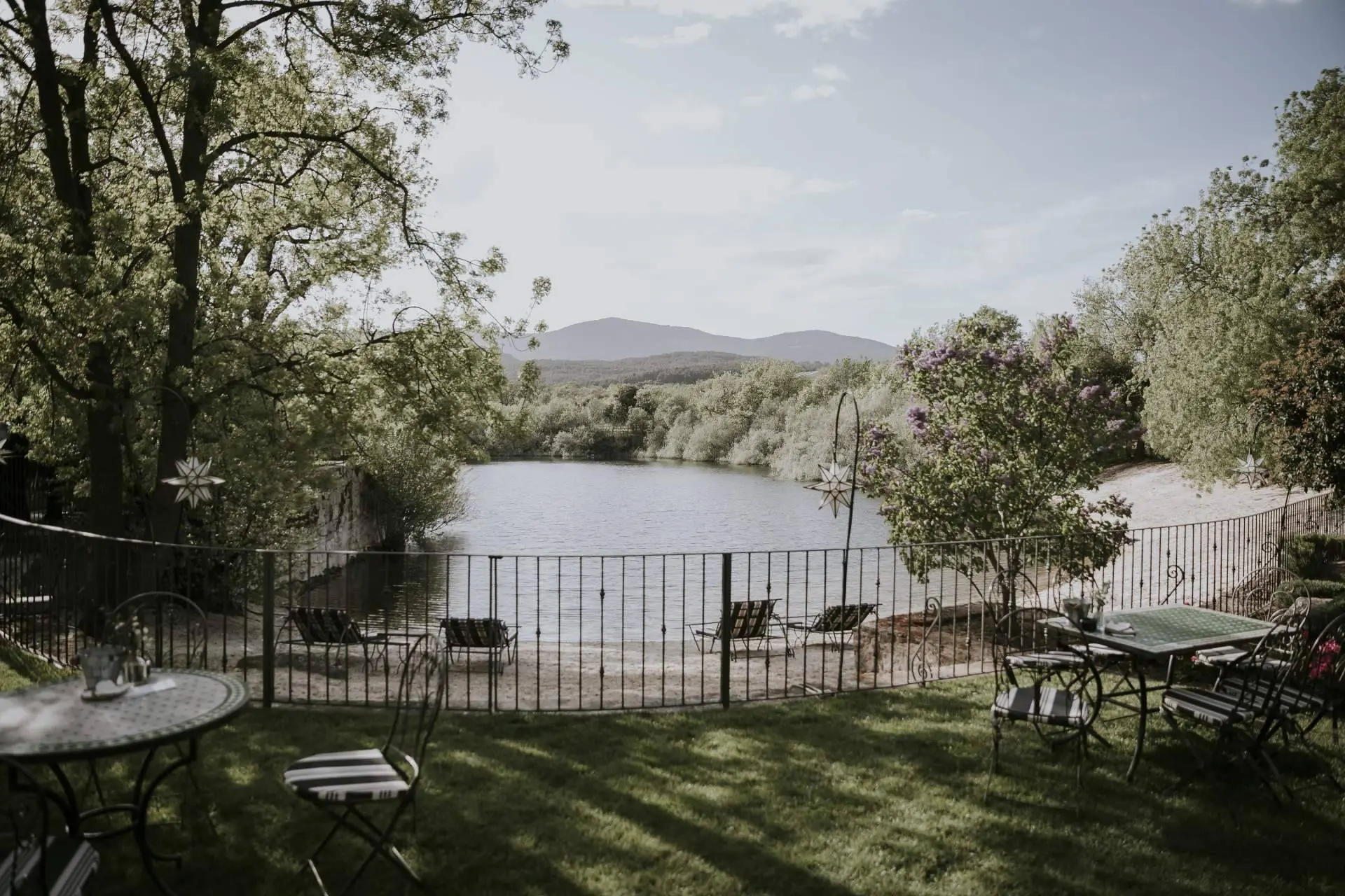 Otro sitio de singular belleza disponible en esta finca es El Embarcadero. La orilla de un lago en plena sierra de Madrid ofrece una vista idílica. La tercera opción, ideal para días de clima frío o lluvia, es El Invernadero. Este espacio acristalado es sumamente luminoso y cuenta con las características necesarias para tener una ceremonia distinta.