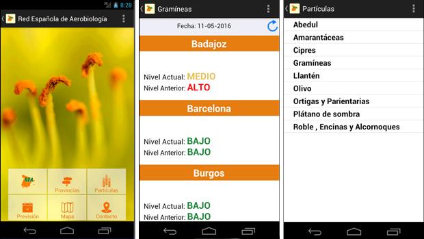 Esta aplicación ofrece información polínica nacional semanal y una previsión de la misma de varios días en adelante, lo cual es muy útil si queremos planificar salidas. Además, utiliza mapas con una escala de colores para mostrar los niveles presentes en el ambiente.