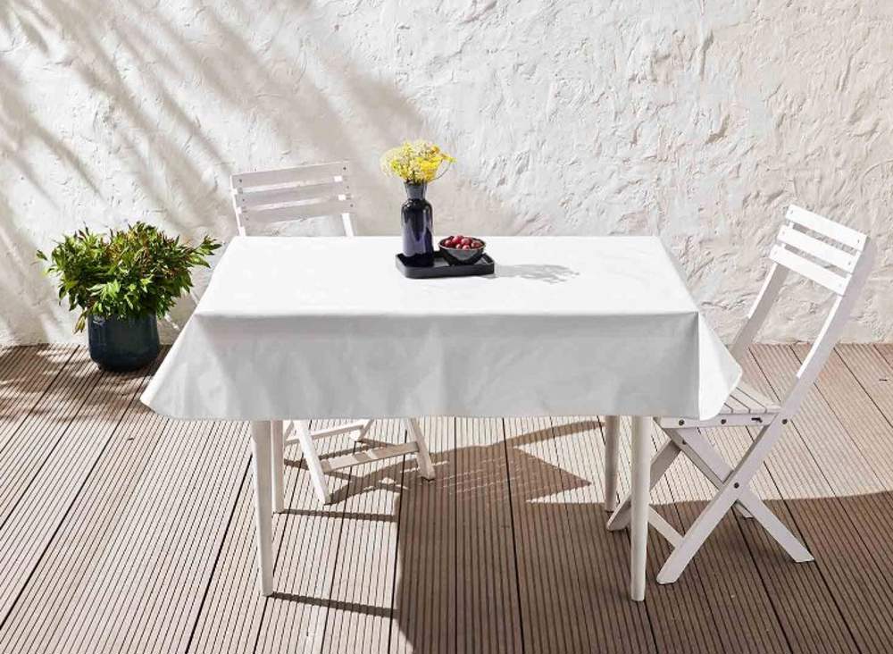 El mantel blanco de Lidl es la alternativa más clásica y minimalista de las tres opciones. No hay que tener miedo, las manchas se eliminarán tan rápidamente y bien como en los manteles de otros colores (incluso las de tomate).
