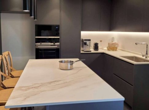 Las cocinas invisibles funcionan en encimeras porcelánicas de diferentes calibres, tamaños y texturas, lo que favorece aún más la personalización del hogar con elementos de diseño únicos y ajustados a las últimas tendencias de decoración. Además, este tipo de cocinas también alcanza un mayor nivel de personalización, adaptándose más fácilmente a los gustos y necesidades de cada persona.