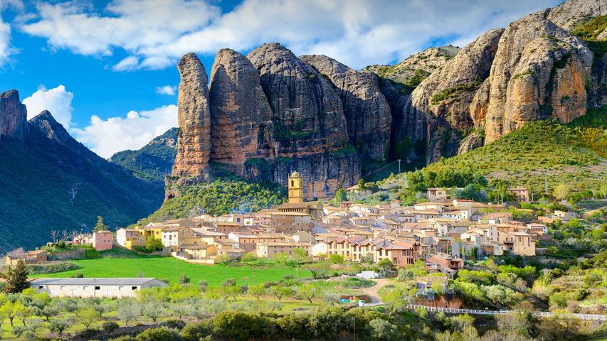 Este diminuto pueblo, habitado por apenas 200 personas, se encuentra a 43 kilómetros de Huesca y se destaca por sus magníficas formaciones rocosas de 200 metros de altura, lo que lo convierte en una verdadera joya escondida en España.