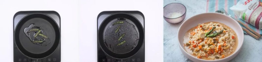 Antes de servir, decoramos con las yemas de los espárragos reservadas previamente. ¡Ya tenemos listo nuestro arroz caldoso con verduras! Un plato saludable y delicioso que podemos disfrutar en cualquier época del año.