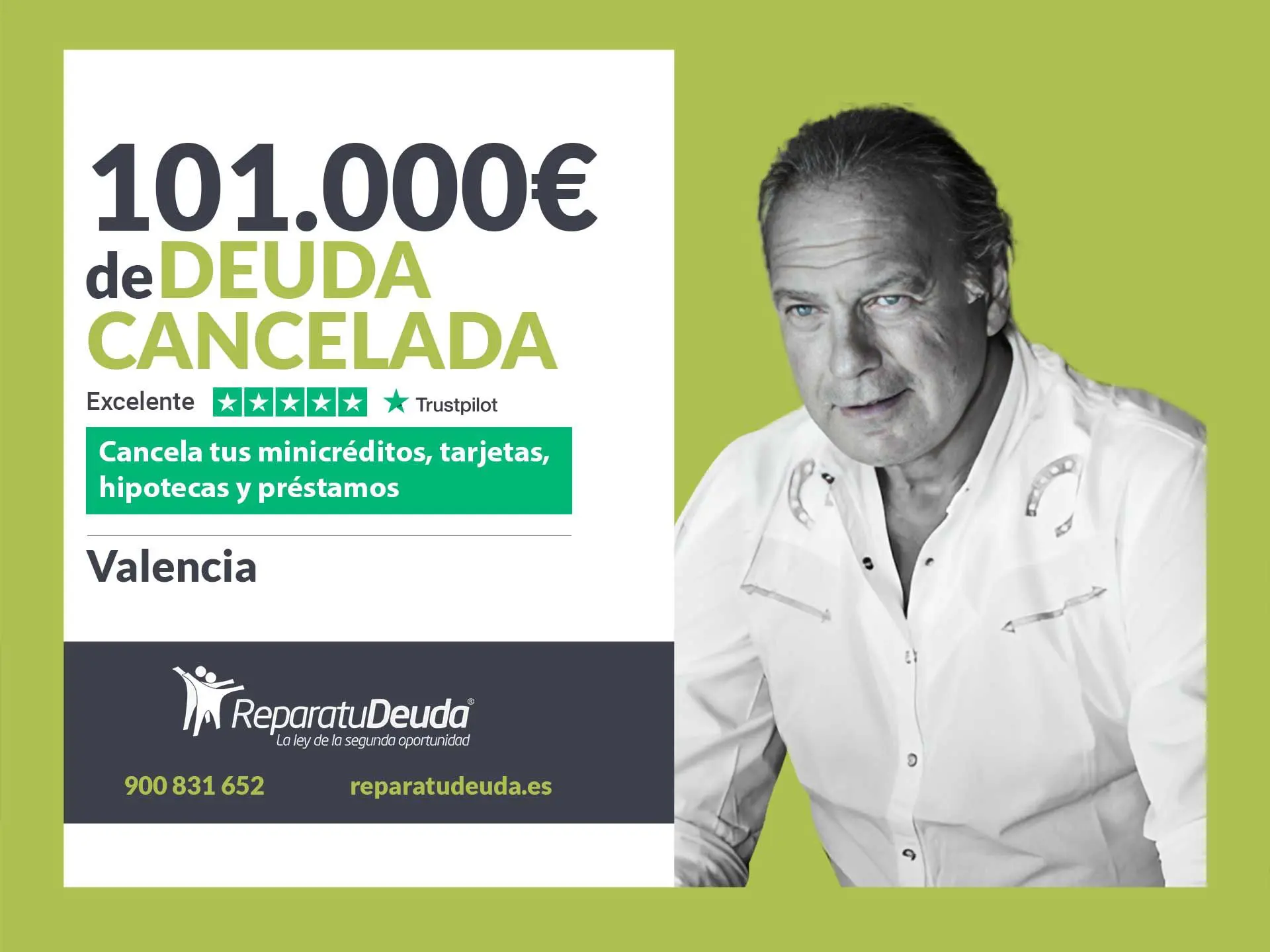 Repara tu Deuda, despacho de abogados líder en España en la Ley de Segunda Oportunidad, ha logrado cancelar una deuda en Valencia que ascendía a 101.000 euros, aplicando la Ley de Segunda Oportunidad. VER SENTENCIA