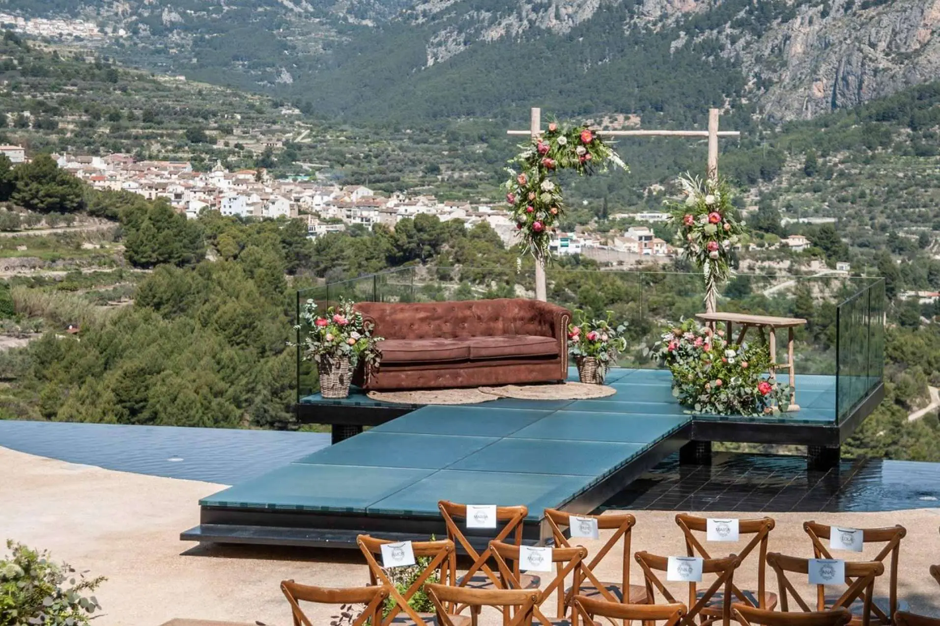 El hotel posee terrazas con vistas panorámicas de las montañas y el Valle de Guadalest. Según Sandra García, es un lugar con encanto y único en España para realizar un evento diferente y con estilo. Es un entorno que proporciona la versatilidad necesaria para adoptar la temática preferida por los novios y con el apoyo logístico para garantizar el éxito.