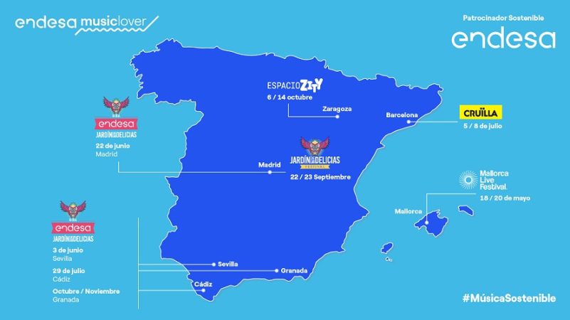 Si en 2022 la novedad fue el Festival Jardín de las Delicias y la creación de su gira, en 2023 la energética mantiene ese compromiso y amplía eventos con una mirada común: ayudar al sector de los festivales en el camino que está emprendiendo hacia la sostenibilidad. Con este apoyo, Endesa busca estar más cerca de la sociedad y mejorar la experiencia del público music lover, sobre todo del más joven.