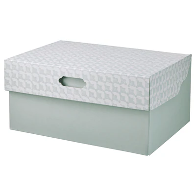 Esta caja con tapa es perfecta para almacenar hojas de papel, lápices y otros objetos pequeños. En el lateral de la tapa, hay un espacio destinado para pegar una etiqueta personalizada en la cual puedas escribir o dibujar el contenido que se encuentra dentro de la caja. El producto es reciclable y, si está disponible en tu área, puede destinarse a la recuperación de energía.