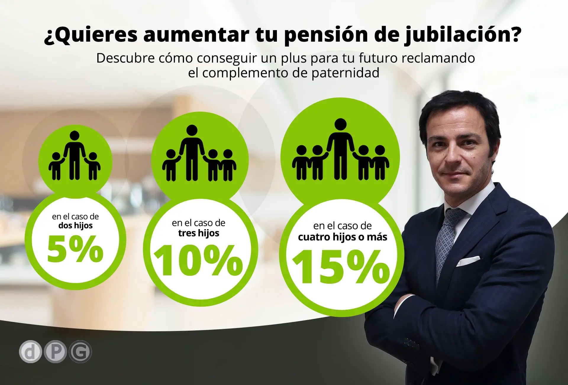 El complemento de paternidad es un porcentaje adicional que se aplica a la pensión inicial y varía según el número de hijos: 5% para dos hijos, 10% para tres hijos y 15% para cuatro o más hijos. Aunque este complemento fue eliminado en 2021, los tribunales han permitido que los hombres que se jubilaron durante el periodo aplicable puedan reclamarlo de forma retroactiva.