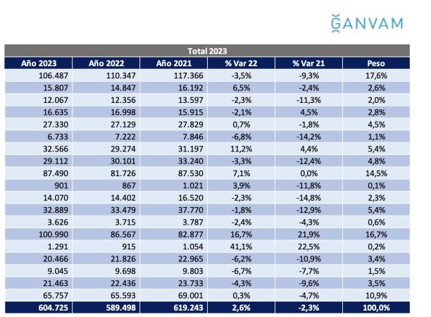 Más de 600.00 ventas y un crecimiento del 2,6% en el primer cuatrimestre de 2023, según GANVAM