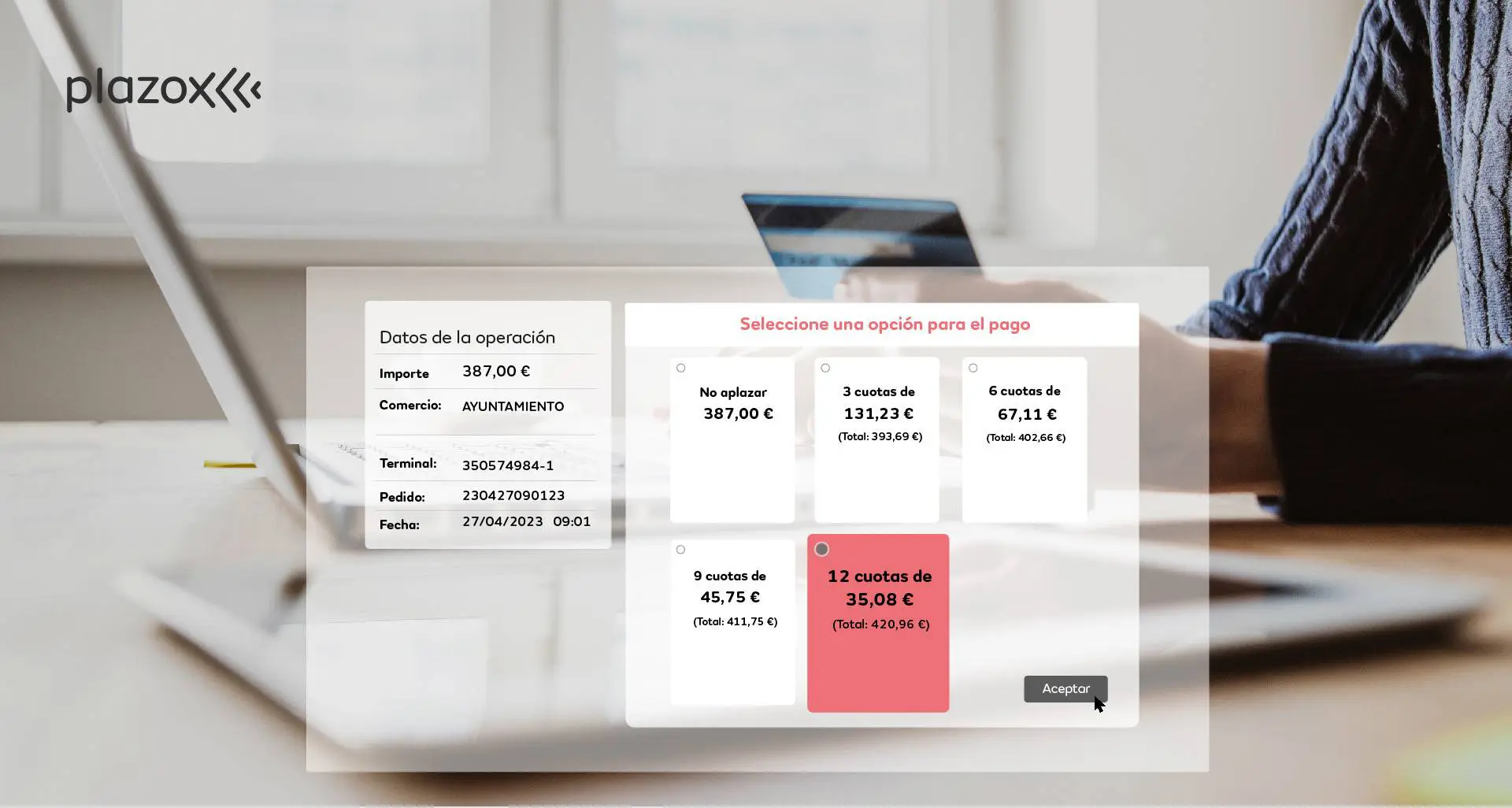 El servicio de pago aplazado en comercios, plazox, puesto en marcha en los terminales de pago con tarjeta por algunas de las principales entidades bancarias españolas, a través de Sistemapay, aporta una nueva forma de fraccionar los pagos de compras e impuestos. Así, plazox ayuda a los contribuyentes a hacer frente a sus obligaciones tributarias, al contar con este servicio de pago aplazado con tarjeta de crédito también en ayuntamientos, diputaciones y otros organismos públicos que disponen de un terminal de pago online.