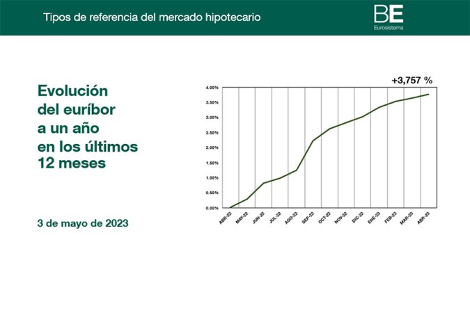 El euribor ha cerrado este viernes en el 3,85% a tan solo 15 décimas de llegar al 4%, algo que podría suceder en las próximas semanas a tenor de la evolución que lleva en el mes de mayo, por lo que podría suponer un quebradero de cabeza para aquellas familias que tengan que revisar su hipoteca, puesto que hace justo un año el indicador más utilizado para los préstamos de vivienda cerró en el 0,28% y meses antes se encontraba en negativo.