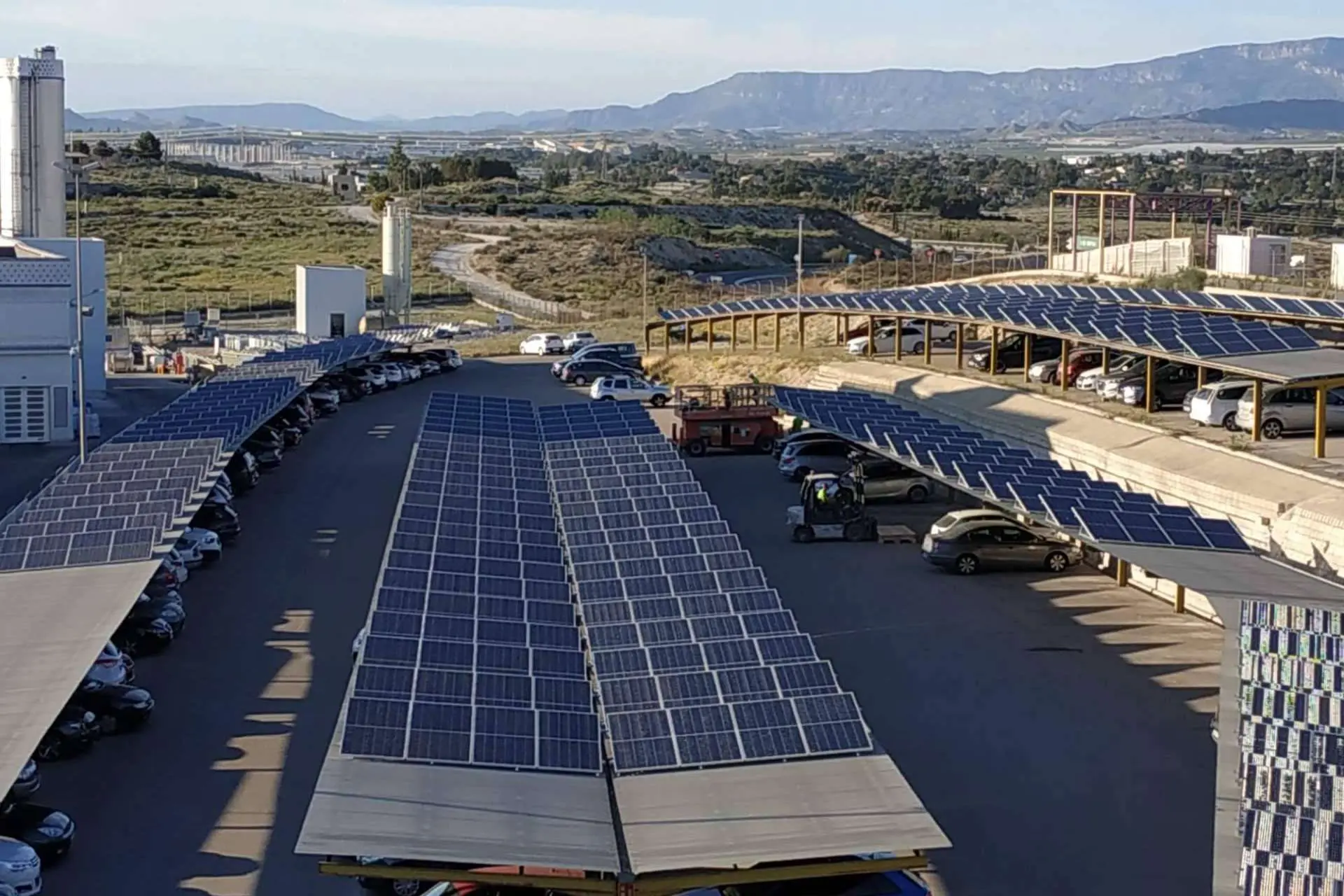 Una de las maneras de implementar este desarrollo es mediante la instalación de placas solares en el techo de los espacios de parking para la obtención de energía eléctrica mediante la radiación solar. Mediante la compensación de excedentes y la instalación de puntos de carga para vehículos eléctricos, es posible asegurarse de que la energía empleada por los mismos es 100 % renovable.