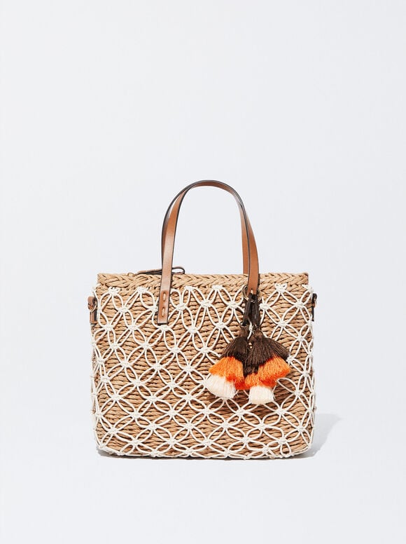 Este precioso bolso combina la trenza de paja con el crochet, lo que crea un efecto artesanal muy natural, bohemio y encantador. Se trata de un bolso estilo shopper en color camel, destacando el crochet de hilo blanco. Incluye un colgante que se puede quitar según tu preferencia. Cuenta con doble asa de mano para mayor comodidad, así como una asa bandolera ajustable y también extraíble. El cierre del bolso se realiza mediante una cremallera, y en su interior encontrarás un práctico bolsillo con cierre de cremallera. Sus dimensiones son de 30x23x12 cm (Largo x Ancho x Alto). Puede ser tuyo por 27,99 euros.