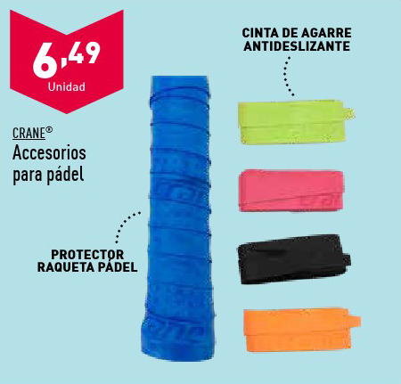 Por sólo 6,49 euros tienes en Aldi un pack que incluye un protector de raqueta y una cinta antideslizante. El protector es ideal para evitar golpes y arañazos durante el juego, mientras que la cinta antideslizante proporciona un agarre seguro en el mango de la raqueta, evitando resbalones incómodos durante los golpes. Estos dos complementos son indispensables para mantener tu equipo en buen estado, a la vez que mejoran tu comodidad y rendimiento en la pista.
