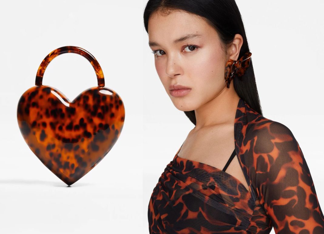 Completar tu look con Bershka exige unos complementos adecuados, ¡y Pepa Salazar ha pensado en todo! Dentro de esta colección tienes un bolso con asa de corazón y estampado de leopardo sobre acrílico, a un precio de apenas 49,99 euros. Es perfecto para combinarlo con el vestido midi, al igual que los pendientes de lazo por 35,99 euros, también disponibles en color rosa.