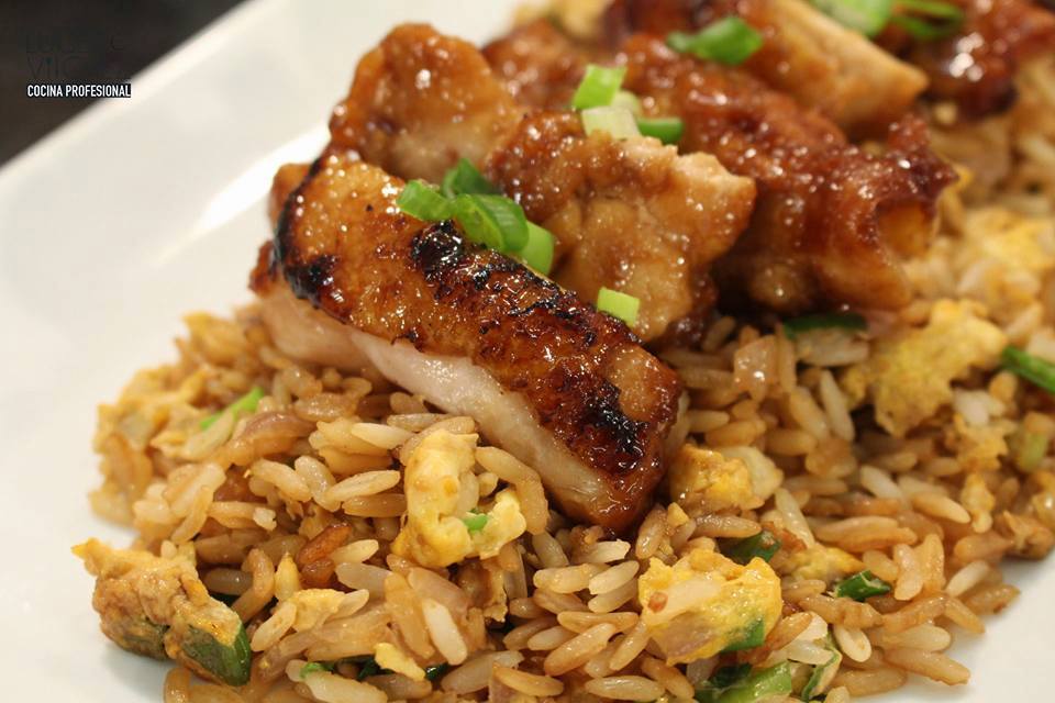 El arroz frito con pollo se cocina con una mezcla de verduras y especias que le dan un sabor único y se complementa con una salsa de mantequilla y limón que aporta un toque ácido y cremoso, que convierte tu plato de verduras en una delicia.