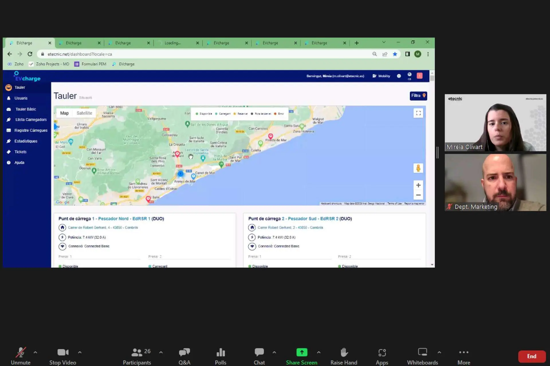 Los cursos gratuitos que imparte Etecnic a sus clientes se realizan mensualmente en formato digital, tanto en castellano como en catalán. Estas tienen una duración aproximada de una hora, en la que se desarrolla una clase de 40 minutos y un diálogo abierto de 15 minutos, durante los cuales se debate con las organizaciones sobre como usan el software de forma periódica, se responden dudas, se explican casos reales y se dan consejos para optimizar la gestión de sus cargadores.
