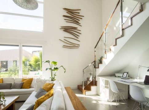 La vivienda principal, en este caso, tiene cuatro habitaciones dobles, tres baños, y puede albergar entre 8 y 12 personas. En su planta baja está el salón – de doble altura – con una cómoda chimenea de leña, cocina y un comedor totalmente equipados. La casa rural, además, dispone de un ático, con chimenea de pellets, biblioteca, más un ámbito destinado a juegos y usos múltiples.