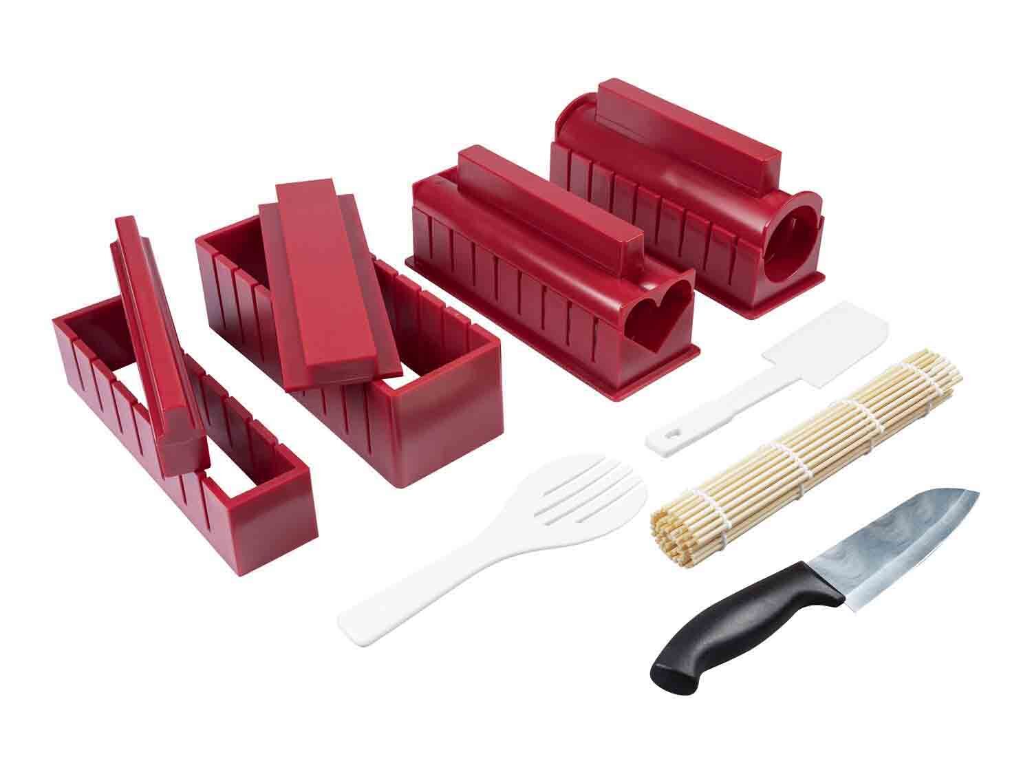 Además, se incluyen 8 moldes en total, una base de bambú, un cuchillo con hoja de acero inoxidable de alta calidad, una espátula y un tenedor de arroz para facilitar la preparación. También viene con una práctica bolsa de almacenaje. Con este kit tendrás todo lo que necesitas para hacer tu propio sushi en casa con tus ingredientes favoritos. El precio de este completo set es de tan solo 11,99 euros.