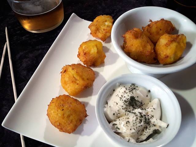 Para comenzar, se debe cortar el bacalao. Luego, se deben añadir en un bol las harinas: harina fuerte, harina de tempura -que ayuda a lograr una textura más crujiente-, levadura en polvo, colorante alimenticio y chalota. Se debe mezclar todo con una varilla y agregar la cerveza. Si se quiere evitar el alcohol, se puede sustituir por agua con gas.