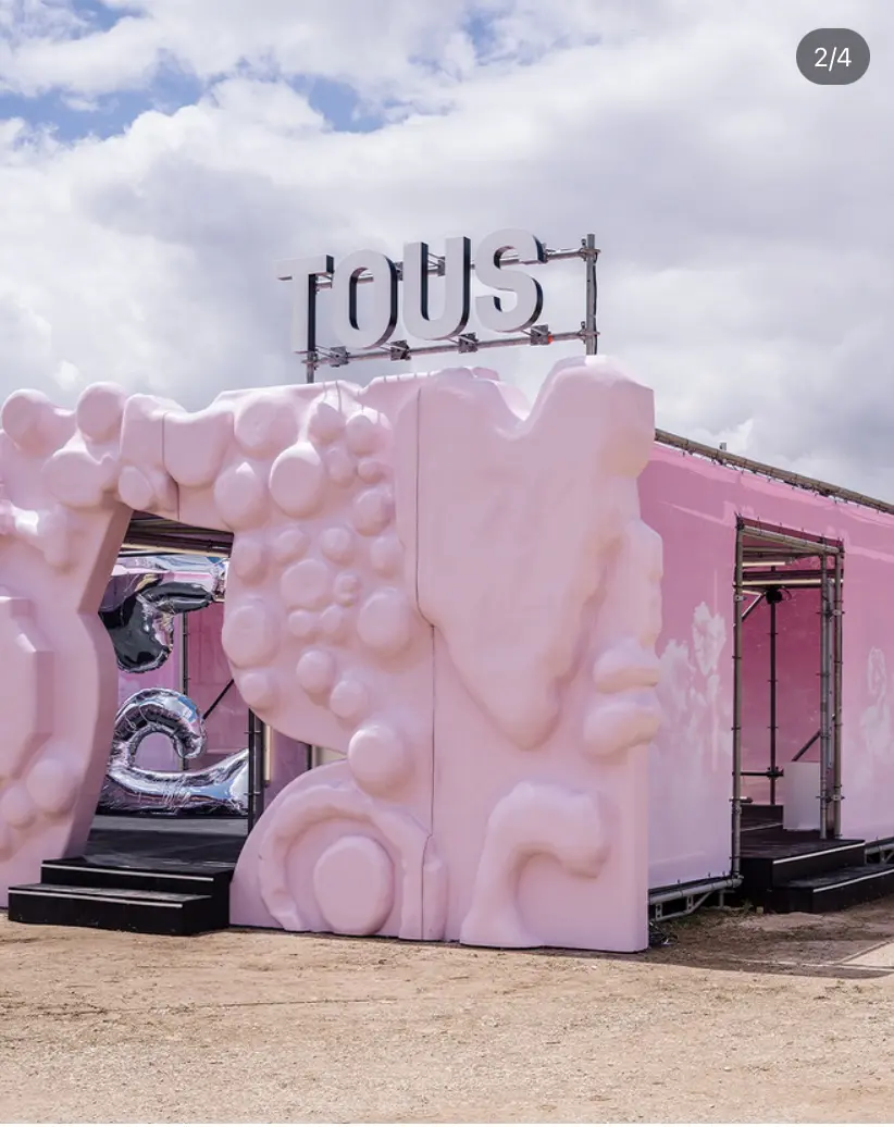 Por fuera la ‘pop-up’ fue diseñada por el estudio de diseño y arquitectura Casa Antillón para los festivales, un espacio efímero desarrollado como colaboración con Tous ya en su centenaria historia dentro de la moda.