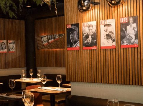 Es un espacio muy amplio, de techos altos, con una sala principal rodeada de grandes ventanales a la calle, con luz natural y cortinas, iluminación regulable y puntos de luz para cada mesa. Y ahora con una nueva barra situada en la entrada del restaurante creando un nuevo espacio para comer de pie o sentado en sus taburetes de terciopelo mostaza.