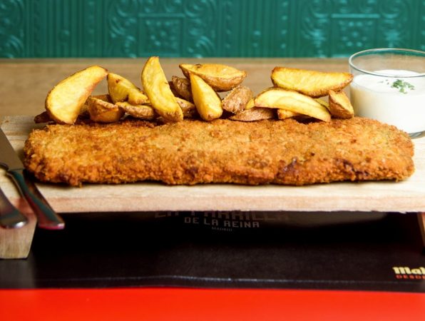 Los chefs del restaurante Daniel Larios & Moises Fernandez, consiguen el cachopo perfecto, con la ternera fina, el queso abundante, buena provisión de pimientos, y un empanado de sobresaliente.