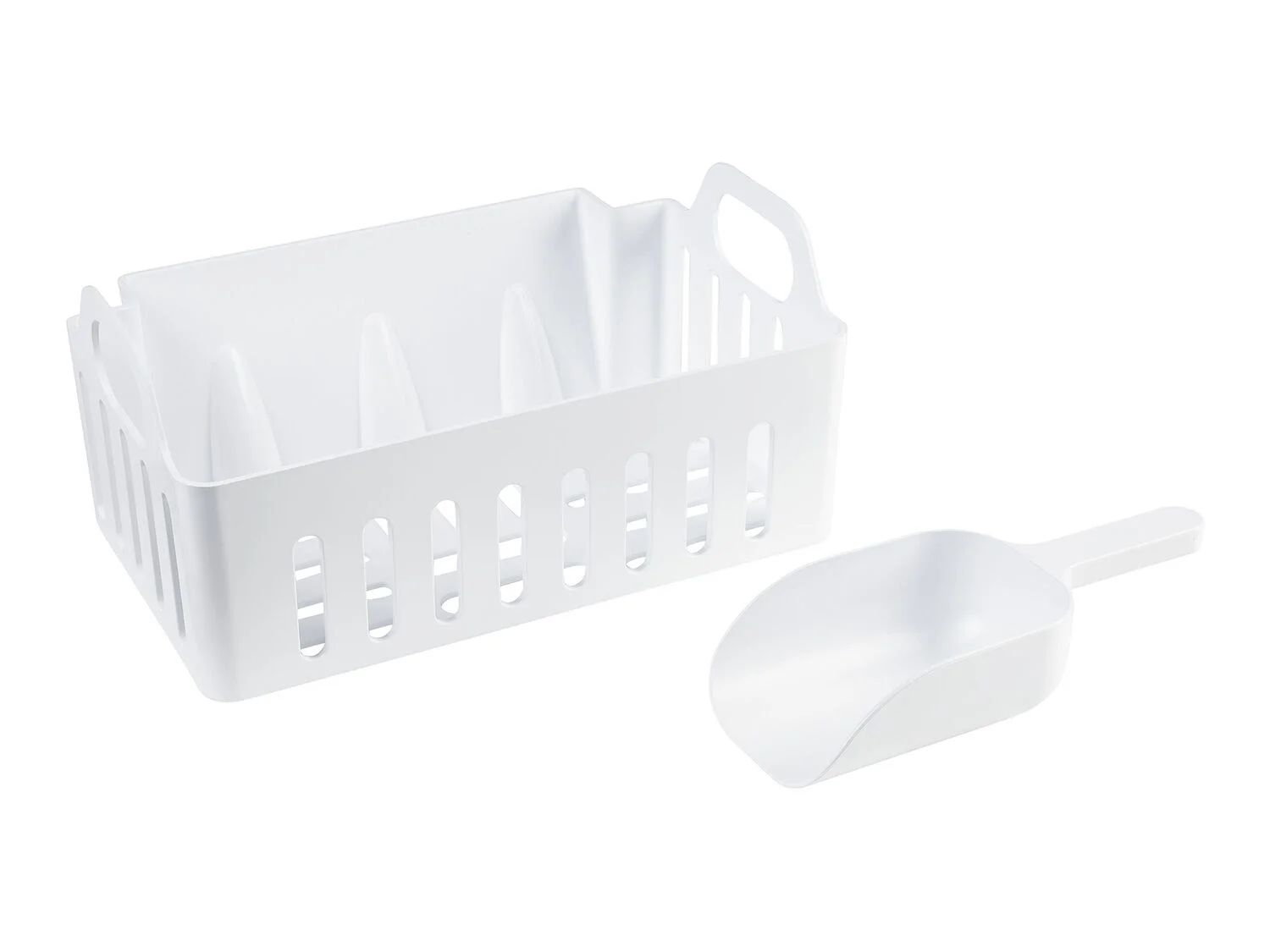 La máquina de Lidl viene con un recipiente extraíble con capacidad para 800 gramos, lo que permite almacenar una cantidad considerable de hielo en la máquina, evitando la necesidad de transferirlos a otro contenedor y ocupar espacio adicional en el congelador. De igual modo, el recipiente facilita el mantenimiento del aparato: al poder extraerlo, se puede limpiar de manera más cómoda y eficiente.