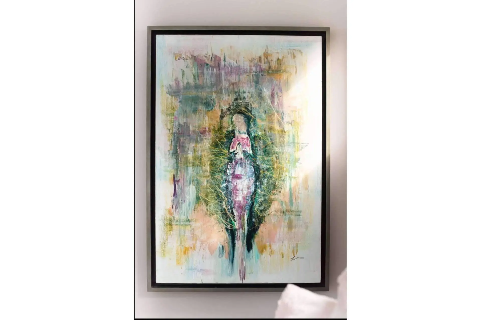 Obras como Rompiendo Barreras forman parte del catálogo que presenta la artista y que representa la barrera interior que generó a sí misma después de la pérdida de su madre, lo que le impedía establecer alguna relación con cualquier figura materna, incluyendo la virgen. Esta creación refleja un paso de Lorena Martín hacia la libertad de escucharse internamente y dejarse llevar de forma abstracta para abrirle las puertas al amor.