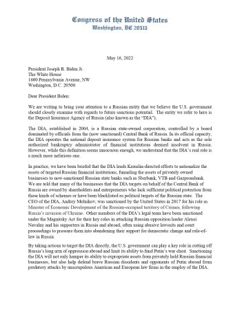 En una carta al presidente de Estados Unidos, Joe Biden, dos políticos de alto rango del Congreso estadounidense subrayaron que, al tomar medidas contra la DIA, el gobierno de Estados Unidos puede desempeñar un papel crucial en la reducción de las actividades opresoras de Rusia en el extranjero y limitar su capacidad para financiar el arsenal militar de Putin.