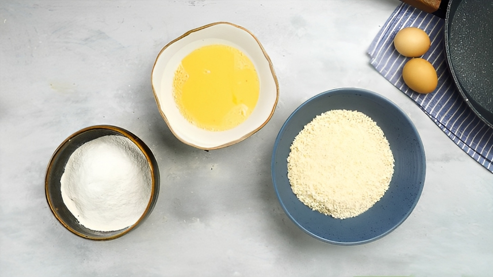 A la hora de hacer este paso vas a necesitar tres recipientes distintos, lo bastante amplios como para rebozar cada cachopo. En uno pondrás la harina, en el segundo va el pan rallado y por último un tercero para los huevos. No te olvides de batirlos antes, pero hazlo sin batidora, recurriendo en su lugar a unas varillas o al tenedor de toda la vida. Procura que los contenidos de los tres recipientes no se contaminen entre sí, separándolos lo suficiente, y ve a por los cachopos que ya has preparado.