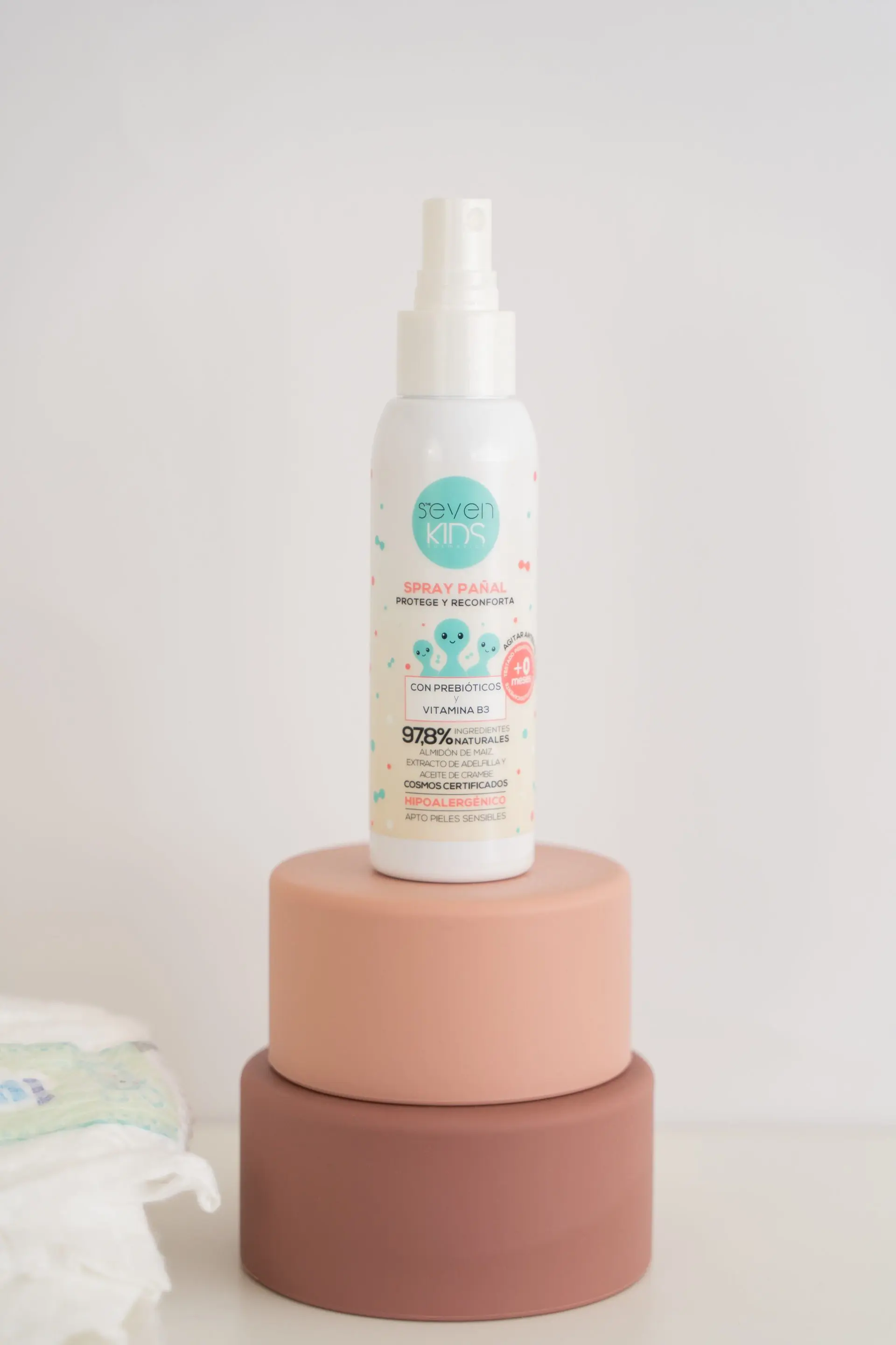 Una formulación exclusiva con efectos muy beneficiosos para el bebé. Como todos los productos Seven Kids, el nuevo spray pañal es único por su fórmula exclusiva con prebióticos y vitamina B3 y ha sido diseñado específicamente para proteger y cuidar de la manera más eficaz la delicada piel de los pequeños de la casa.